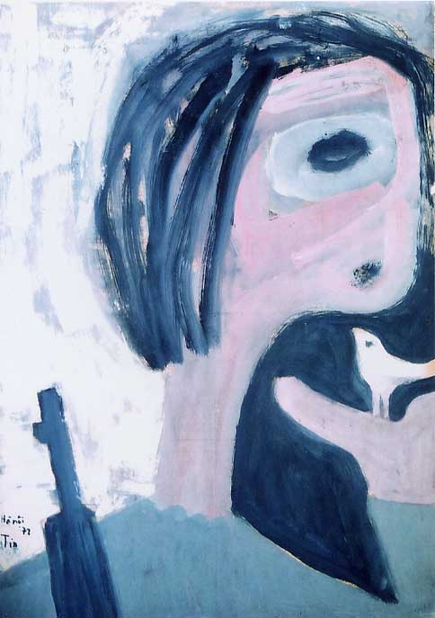 チャン・チュン・ティンは戦争の激しくなる南ベトナムで、新聞紙に油彩で少女の姿にいろいろな思いを託し、独自の画境の作品を切り開いた画家である。銃は暗い戦いの日常や現実を、そして小鳥を慈しむ様子は、そんな状況に置かれても優しさや愛情を忘れない、さらには守るべきものへの想いなどが象徴されているようにも見てとれる。